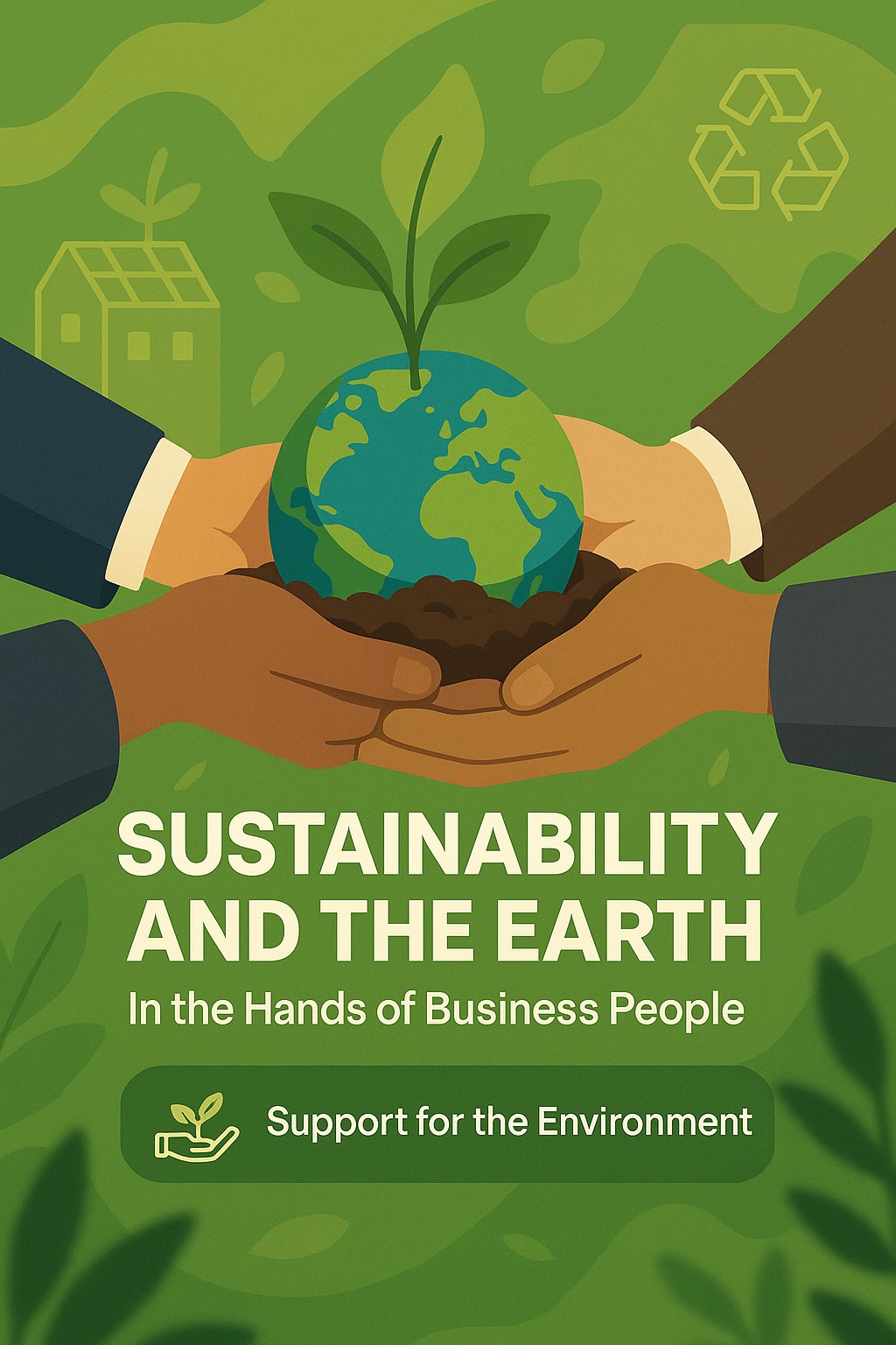 /Collection: /by davooda/Type: PNG/A vibrant illustration representing the theme of sustainability, featuring hands holding a globe with a plant. Ideal for promoting environmental initiatives among business professionals.