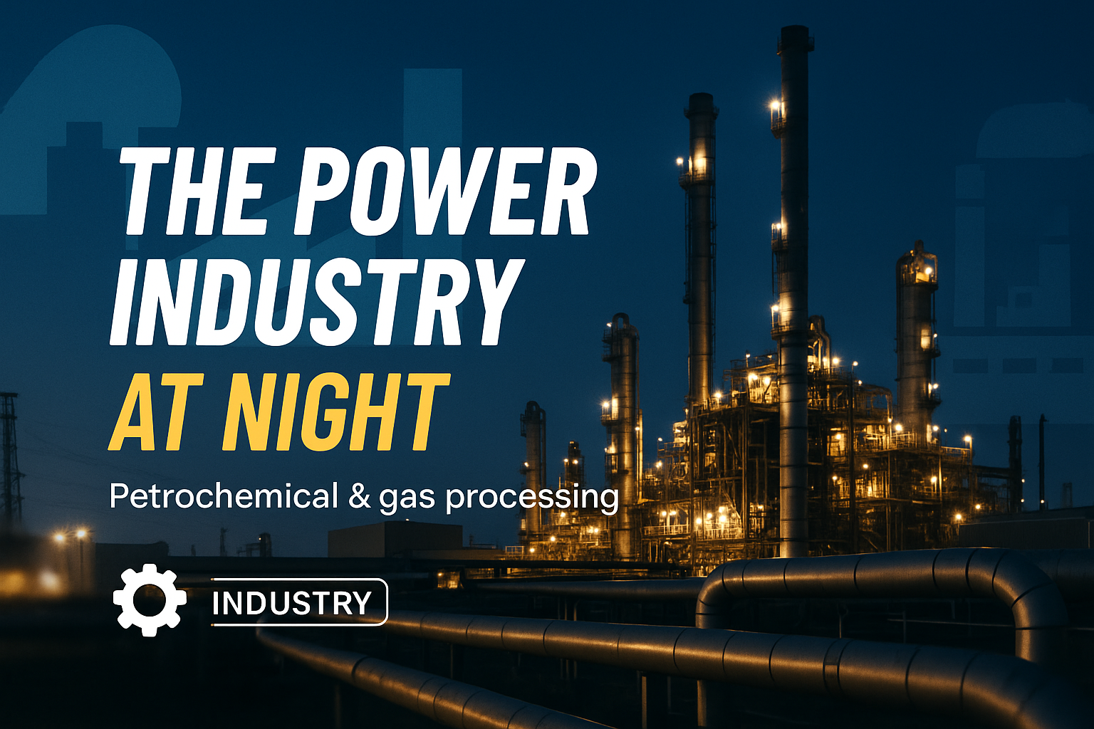 /Collection: /by davooda/Type: PNG/A striking image of a petrochemical and gas processing plant illuminated at night, showcasing industrial architecture suitable for industry-related presentations or articles.