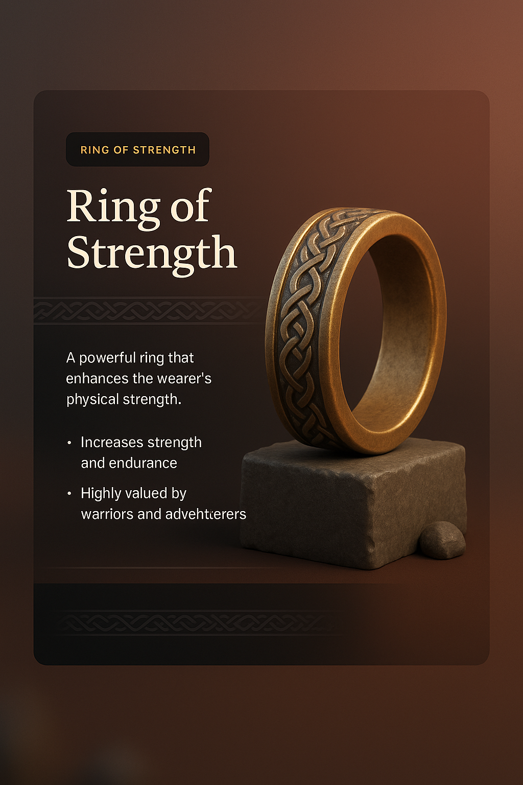 /Collection: /by davooda/Type: PNG/A beautifully crafted 3D illustration of a ring symbolizing strength, displayed on a textured surface with a dark overlay. The design includes intricate patterns, enhancing its allure.