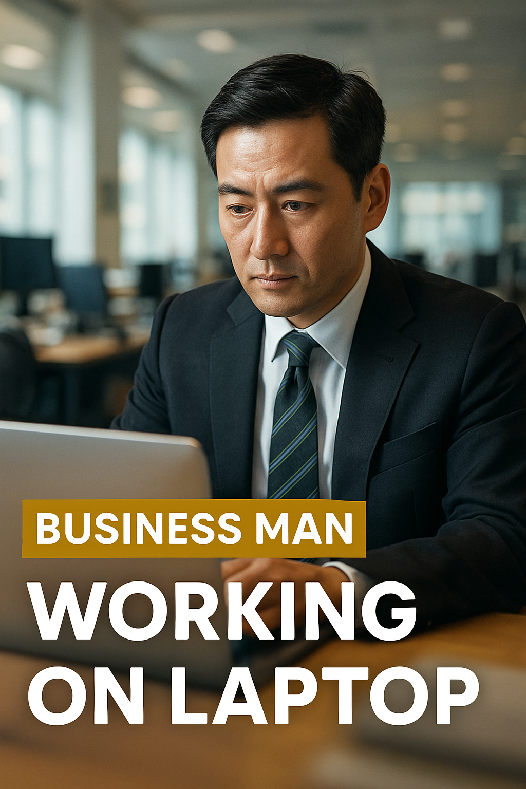 /Collection: /by davooda/Type: PNG/A professional image of a businessman intently working on a laptop in a modern office setting. The design is clean and contemporary, suitable for corporate or professional contexts.