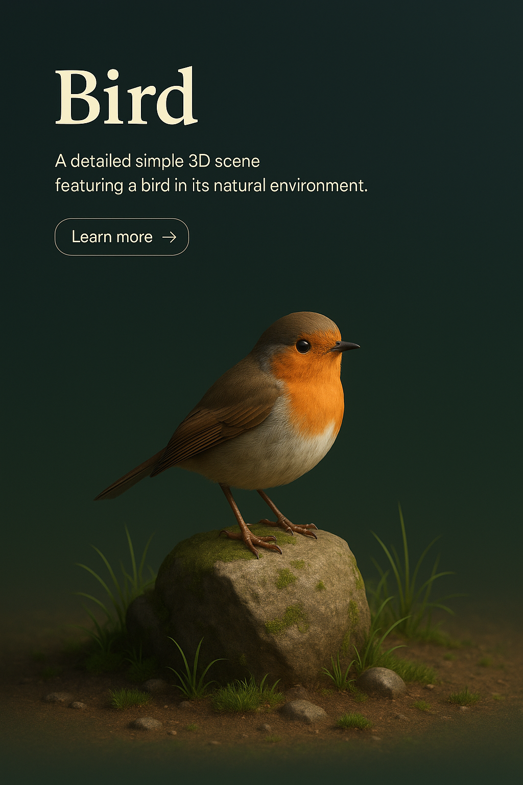 /Collection: /by davooda/Type: PNG/A beautifully detailed 3D representation of a bird in its natural environment, set against a dark gradient background. The scene captures the bird's intricate features and surroundings, providing a zoomed-out perspective.
