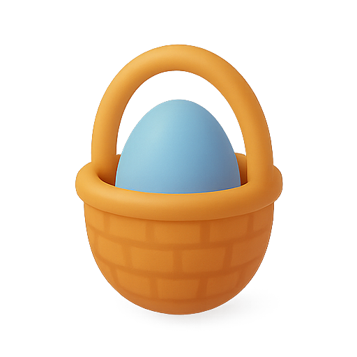 /Collection: /by davooda/Type: PNG/A vibrant 3D rendering of a blue egg nestled in an orange basket, ideal for spring-themed promotions or Easter-related graphics. The design is playful and appealing.