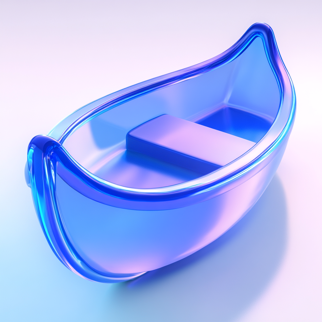 /Collection: /by davooda/Type: PNG/A digitally rendered image of a transparent boat featuring smooth, flowing lines and a soft gradient of blue hues, ideal for modern design projects and digital art showcases.