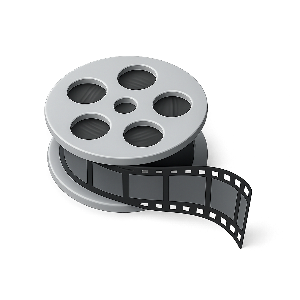 Stylish 3D Film Reel Icon with Filmstrip Design