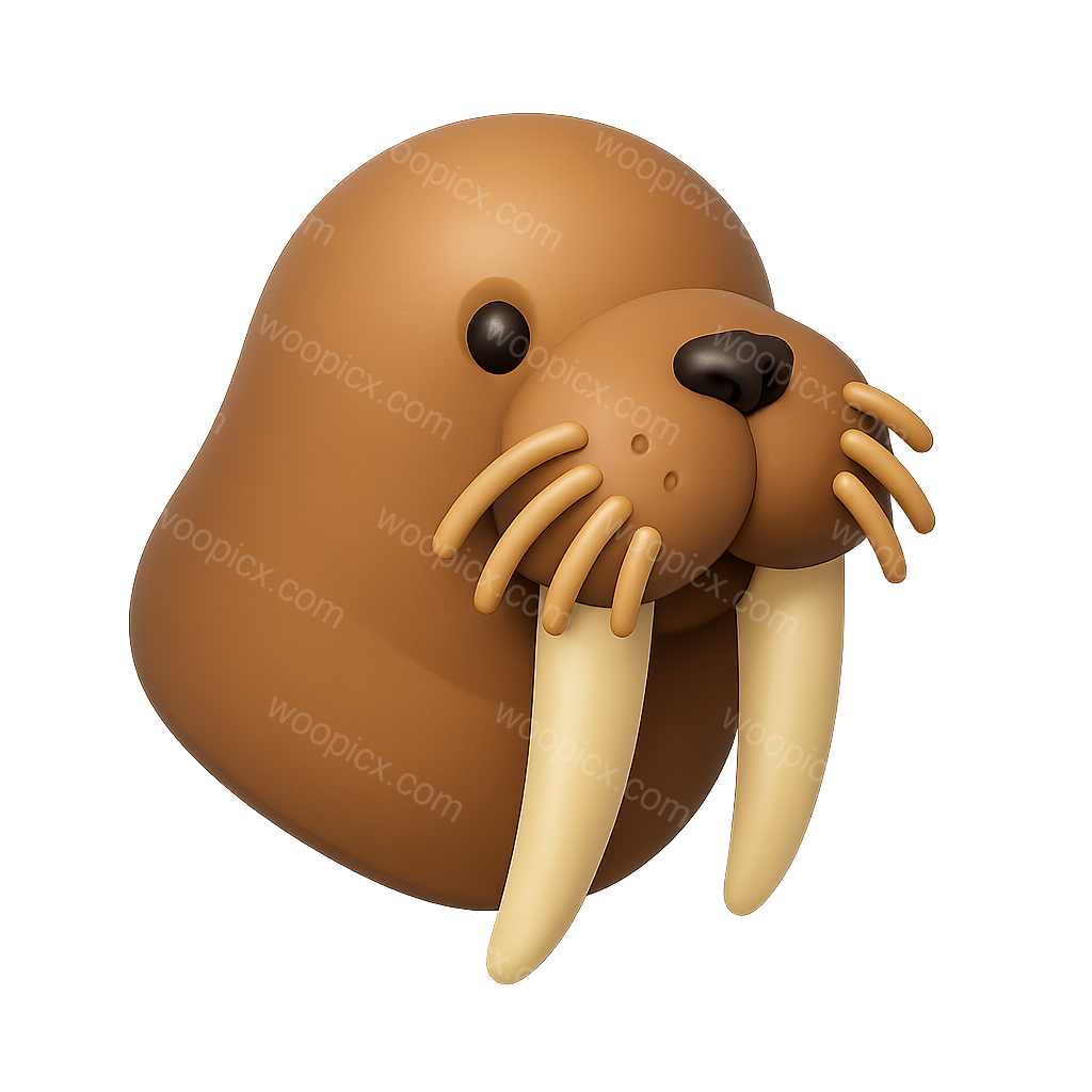 Stylized 3D Walrus Icon with Tusk and Whiskers