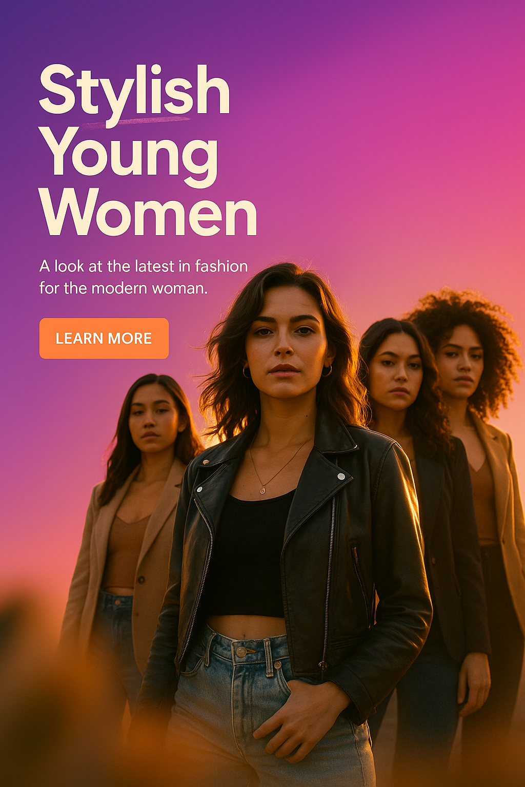 This promotional image features a group of stylish young women against a vibrant sunset backdrop. It's designed as a social media post highlighting modern fashion trends.