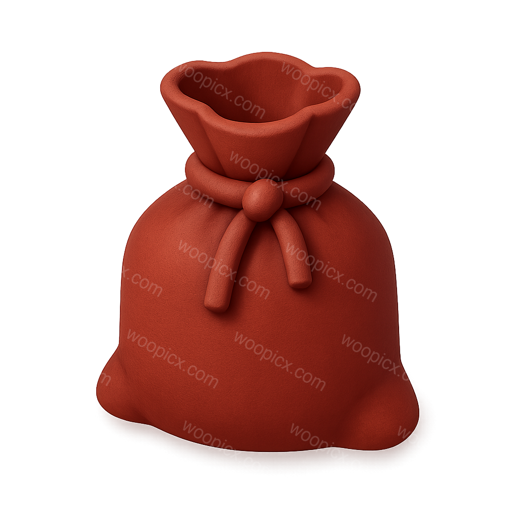 A vibrant 3D representation of a red bag with a decorative bow at the top. The bag has a rounded shape and a slightly textured surface, giving it a playful and modern aesthetic.