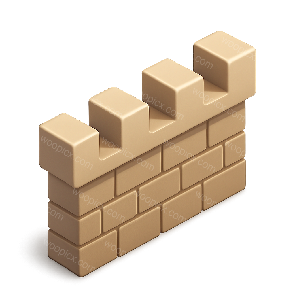 A simple 3D isometric representation of a crenellated battlement wall with a smooth, volumetric design. The wall features a beige color and a transparent background.