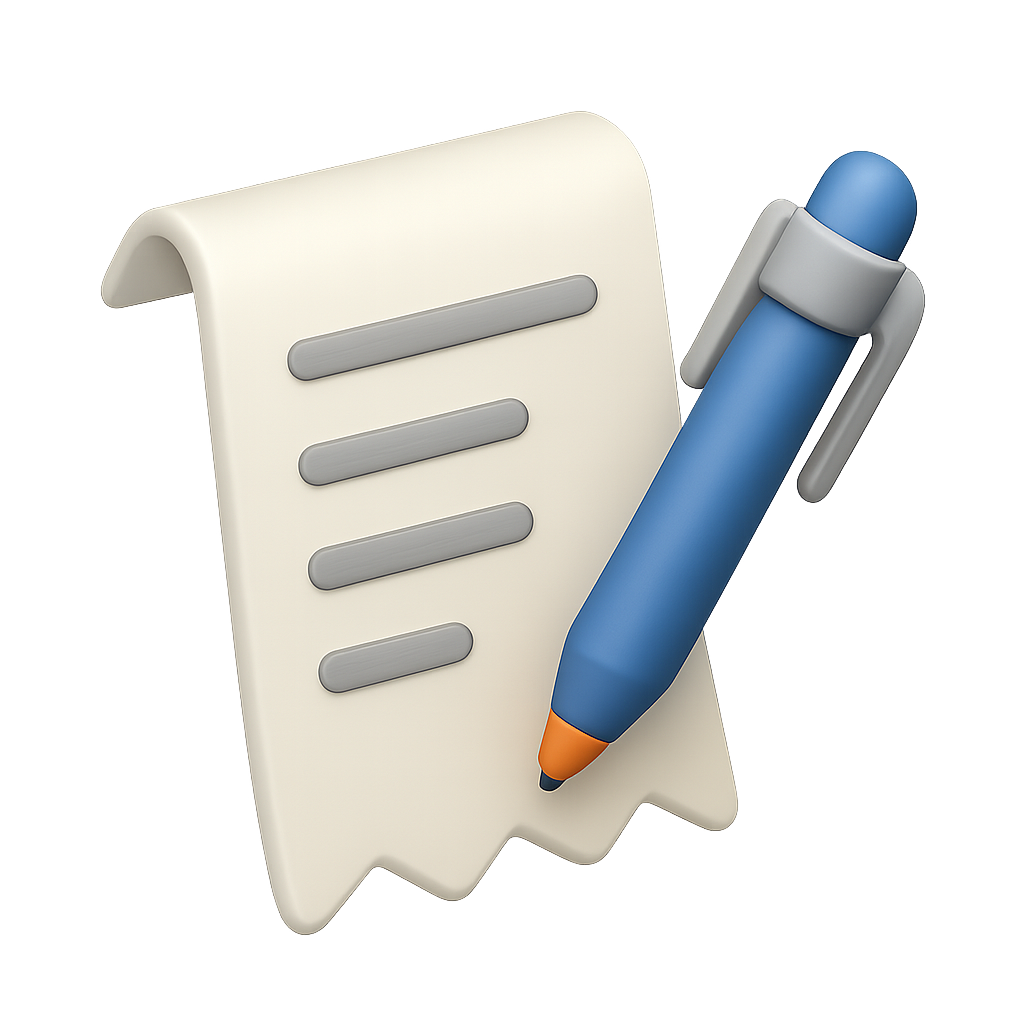 Stylized 3D Receipt Icon with Pen in Isometric View