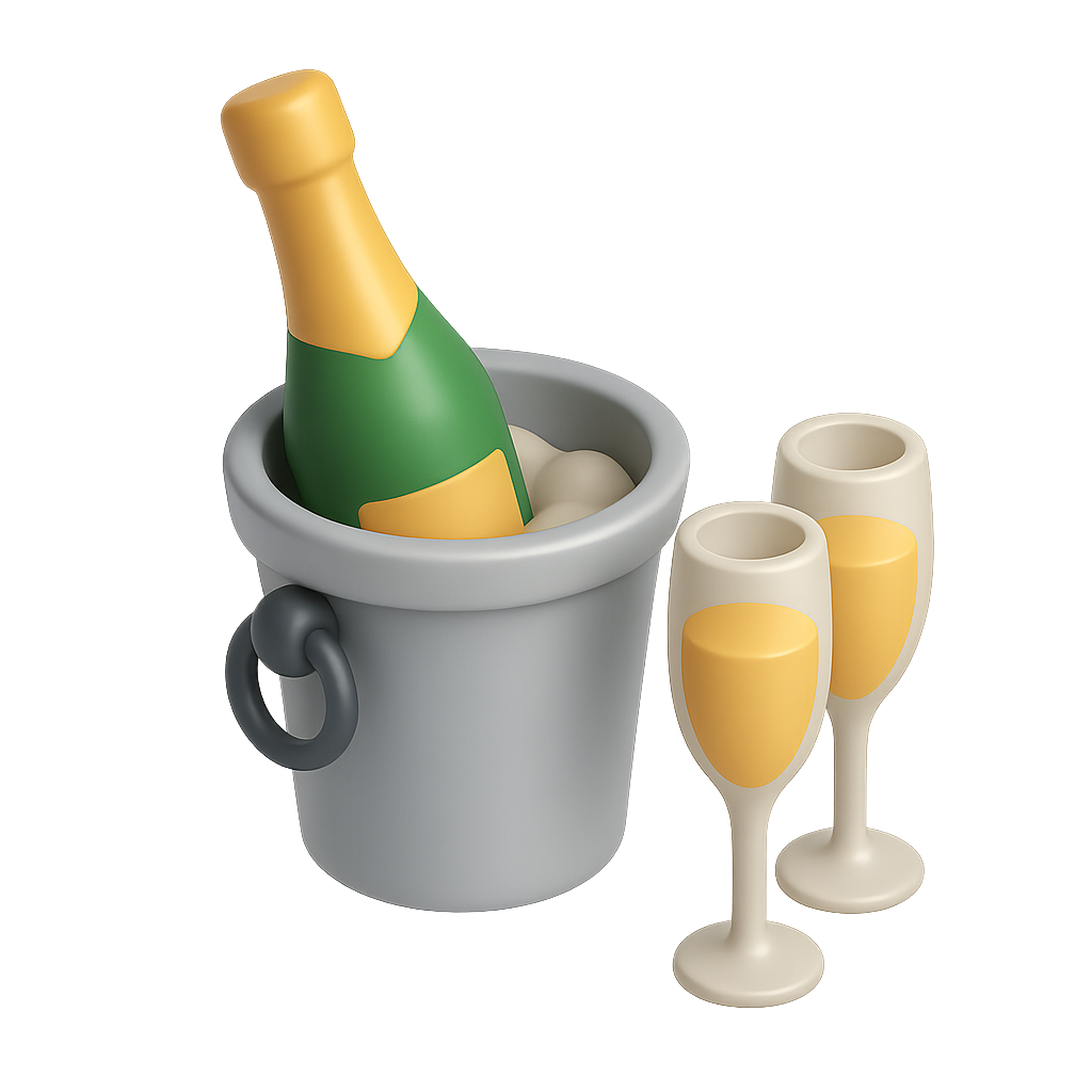Stylized 3D Champagne Icon in a Bucket with Glasses