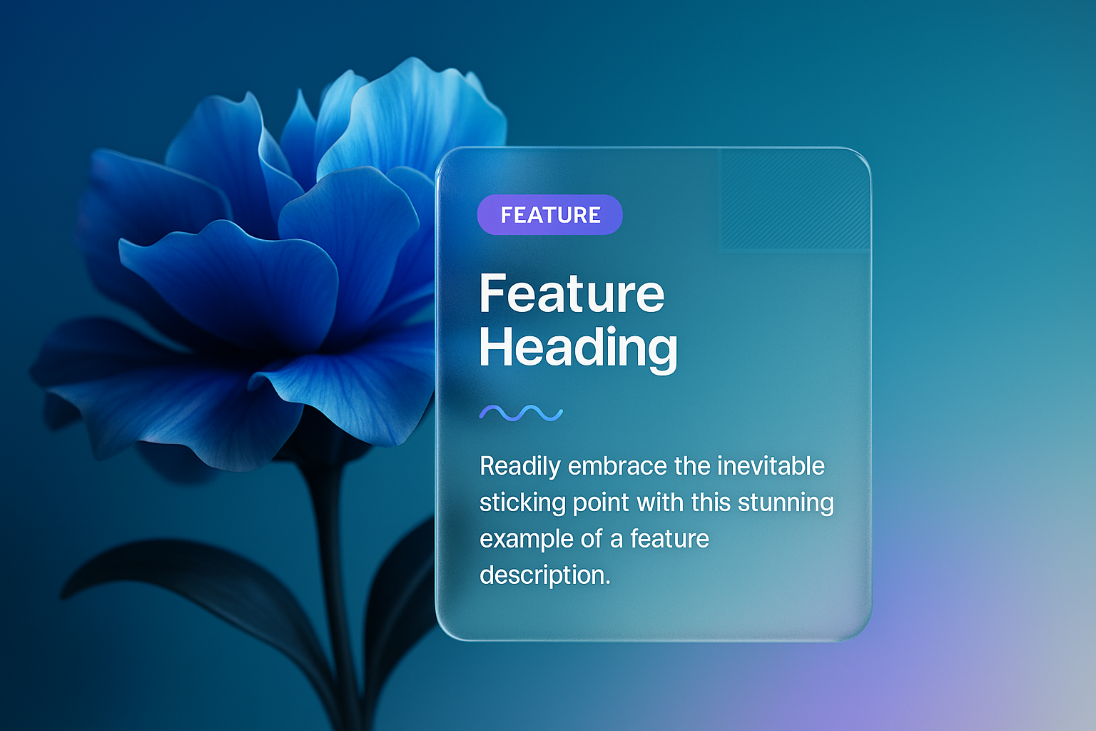 A vibrant blue flower stands out against a smooth gradient background. It features a transparent block with a heading and text, creating an engaging visual layout.