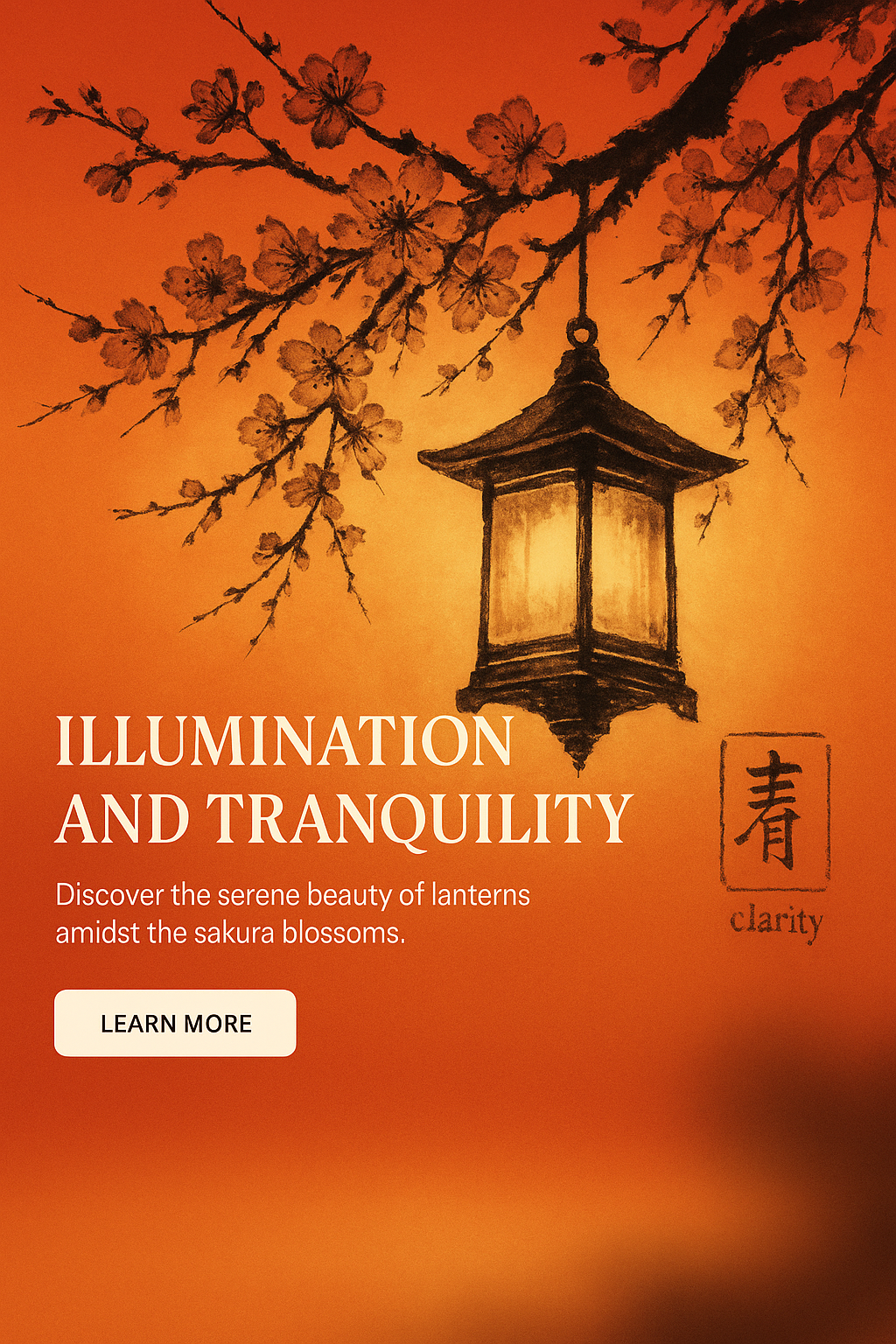 This is a digital promotional graphic featuring a lantern and cherry blossoms, designed to evoke tranquility and beauty. Ideal for a nature or lifestyle campaign.