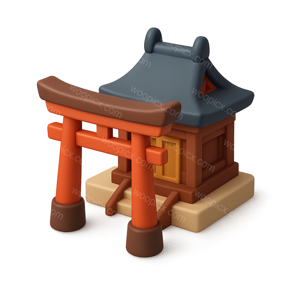 Stylized 3D Shinto Shrine Icon with Torii Gate