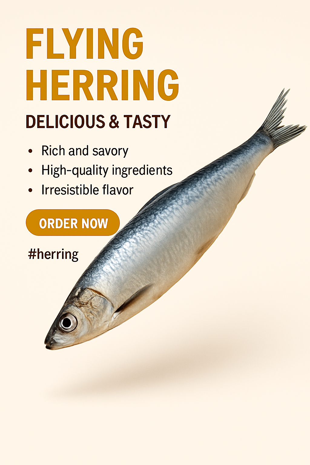 Engaging promotional image for Flying Herring, highlighting its delicious taste and quality ingredients. Ideal for food marketing and restaurant promotions.