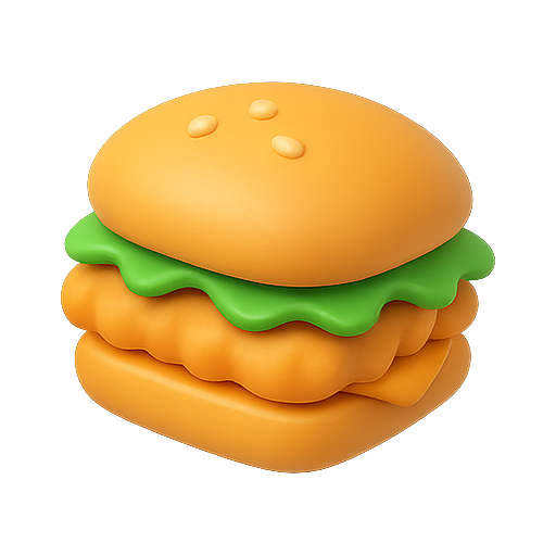A playful 3D illustration of a hamburger featuring bright colors and a fun design, ideal for food-related content, apps, or children's media.
