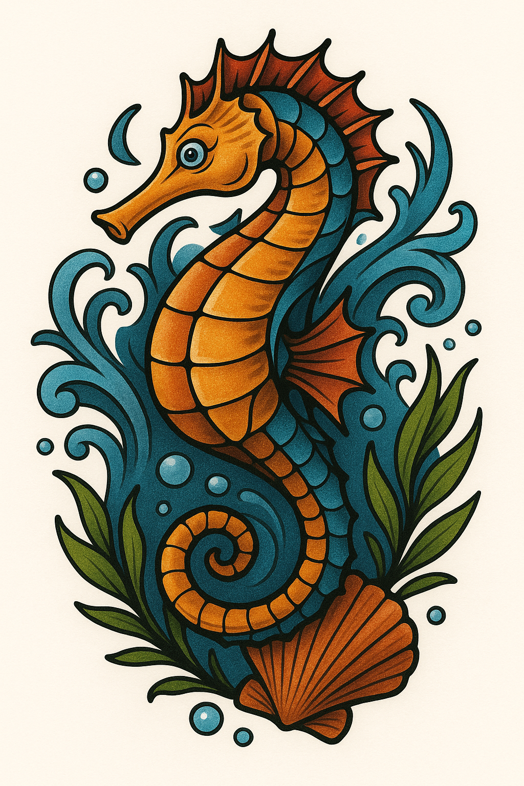 Colorful Seahorse Illustration with Marine Elements