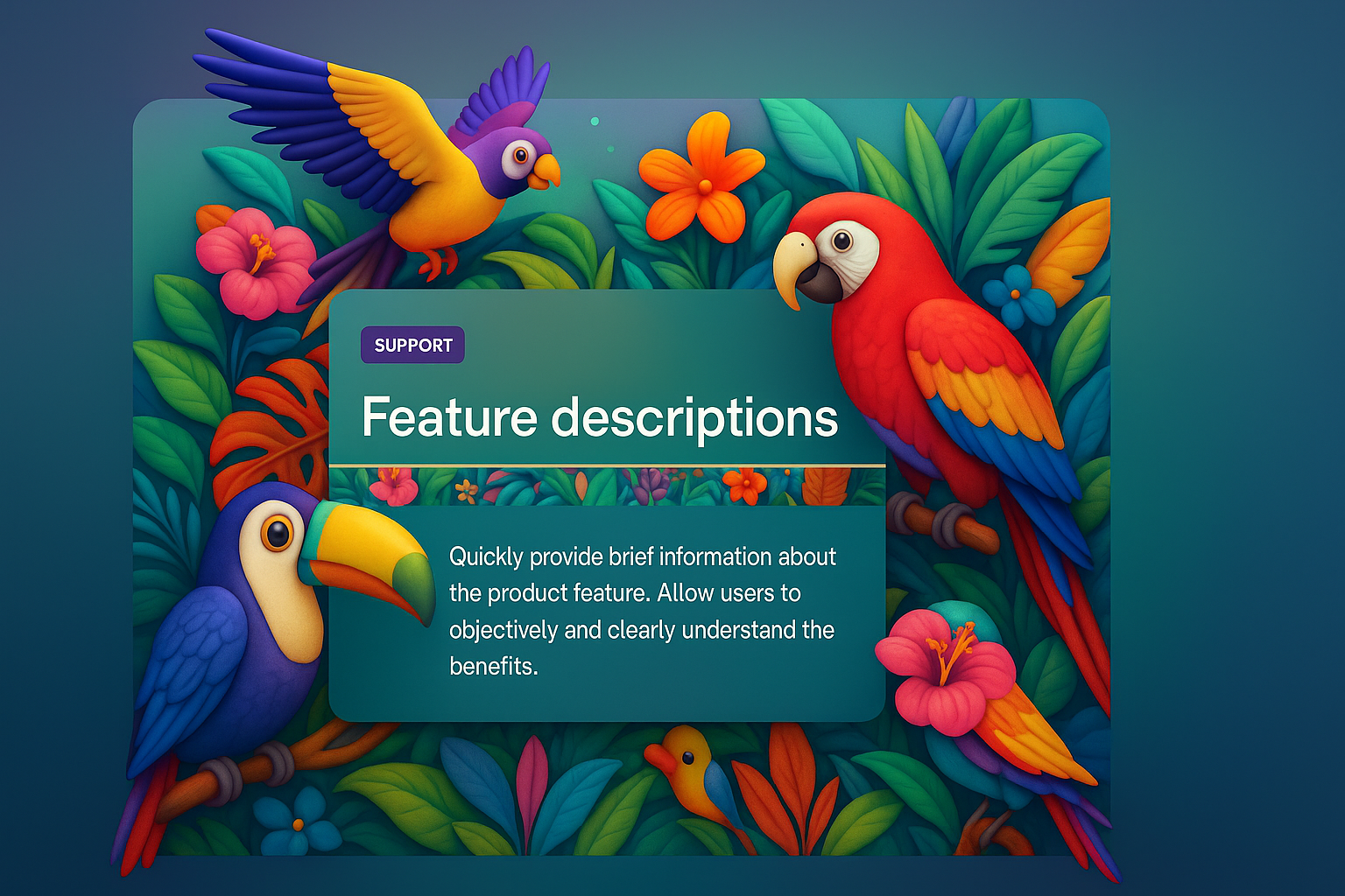 /Collection: /by davooda/Type: PNG/A seamless pattern featuring vibrant tropical birds and lush flowers, set against a smooth gradient background. The design integrates product features in a visually appealing manner.