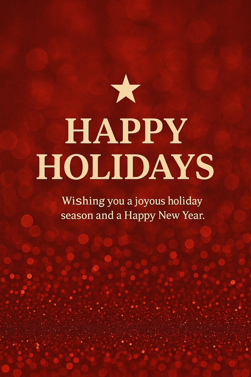 A visually appealing holiday greeting card featuring a vibrant red bokeh background with elegant typography, perfect for seasonal wishes and celebrations.
