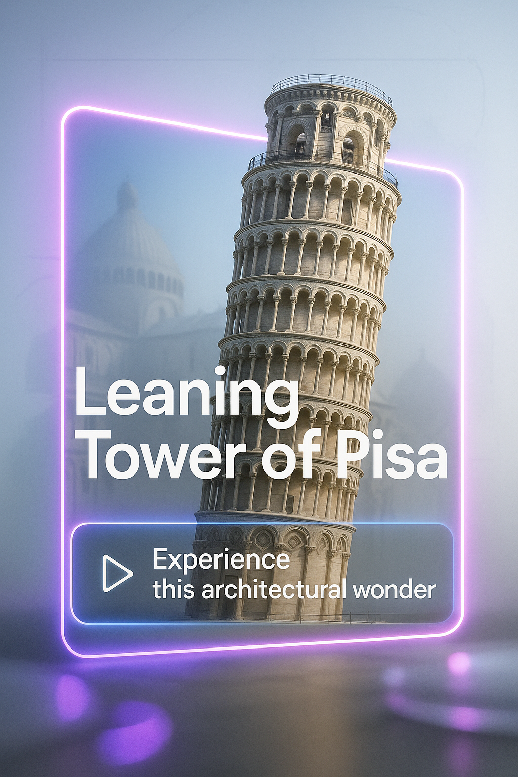 Visually engaging promotional image showcasing the Leaning Tower of Pisa with modern design elements, perfect for travel marketing and tourism campaigns.