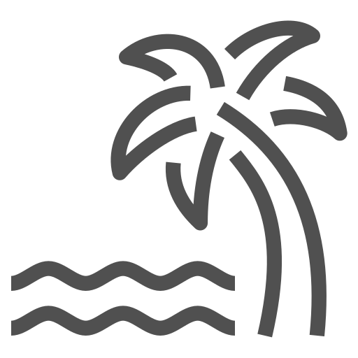 outline simple icon: beach, coastline, nature, palm tree, sea