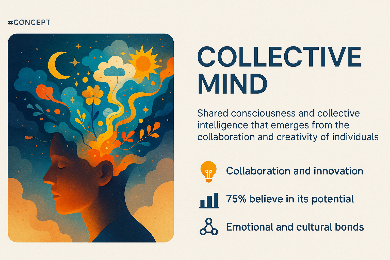 /Collection: /by davooda/Type: PNG/A visually striking illustration representing the concept of collective intelligence, featuring a profile with vibrant elements symbolizing creativity and collaboration, ideal for educational or motivational contexts.