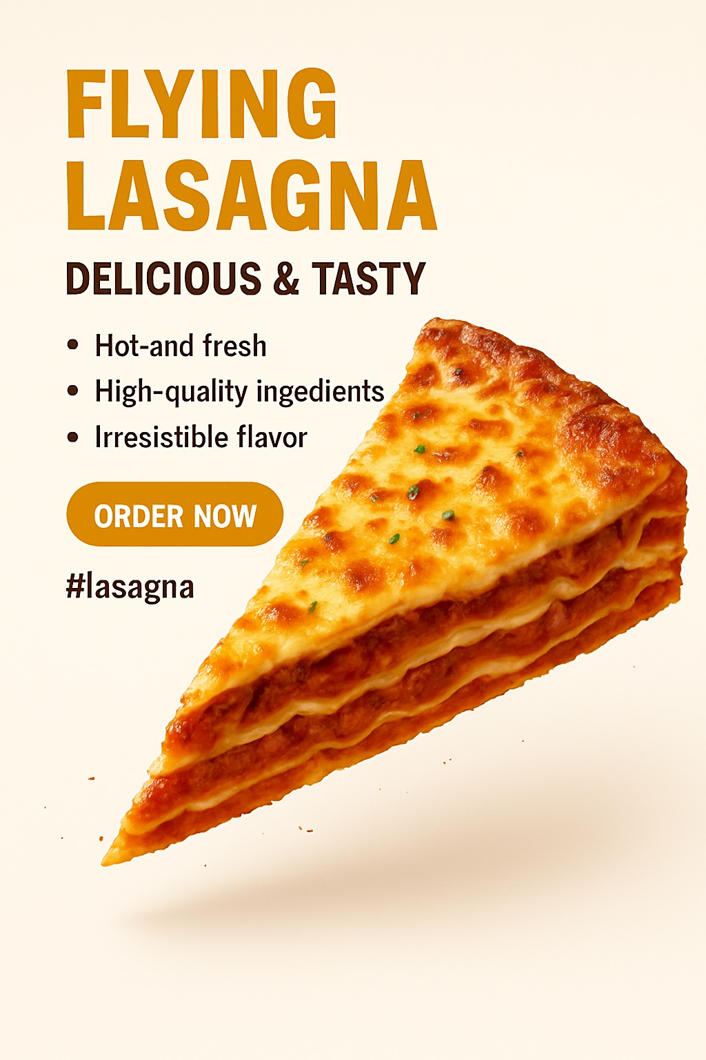 Promotional Food Graphic Featuring Delicious Lasagna Slice