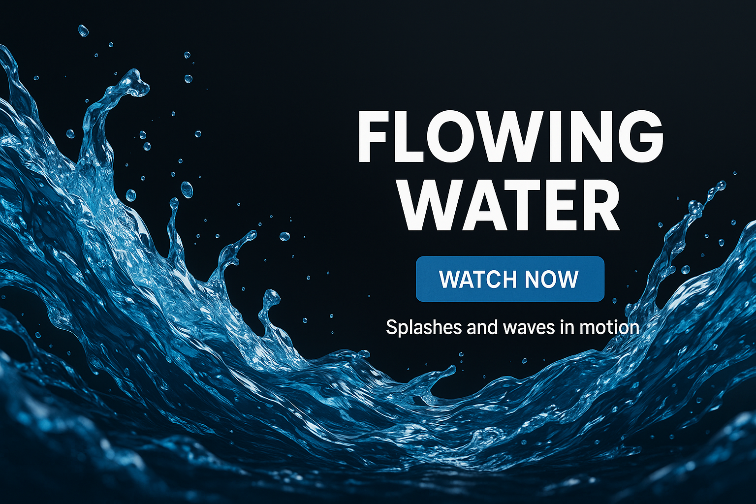 Vibrant graphic showcasing flowing water with splashes and waves, designed for a promotional call to action, perfect for digital marketing campaigns.