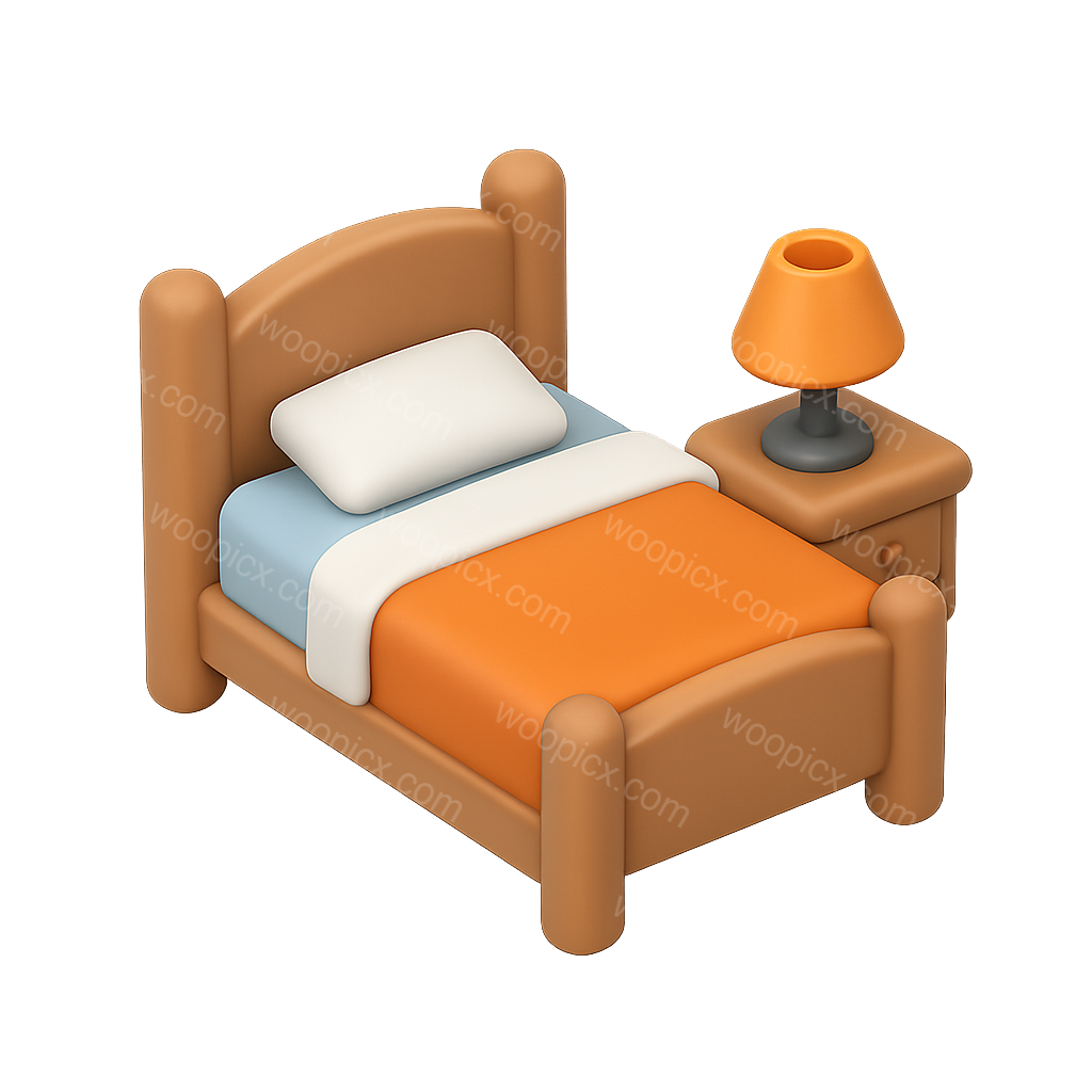Stylized 3D Bedroom Icon with Bed and Lamp