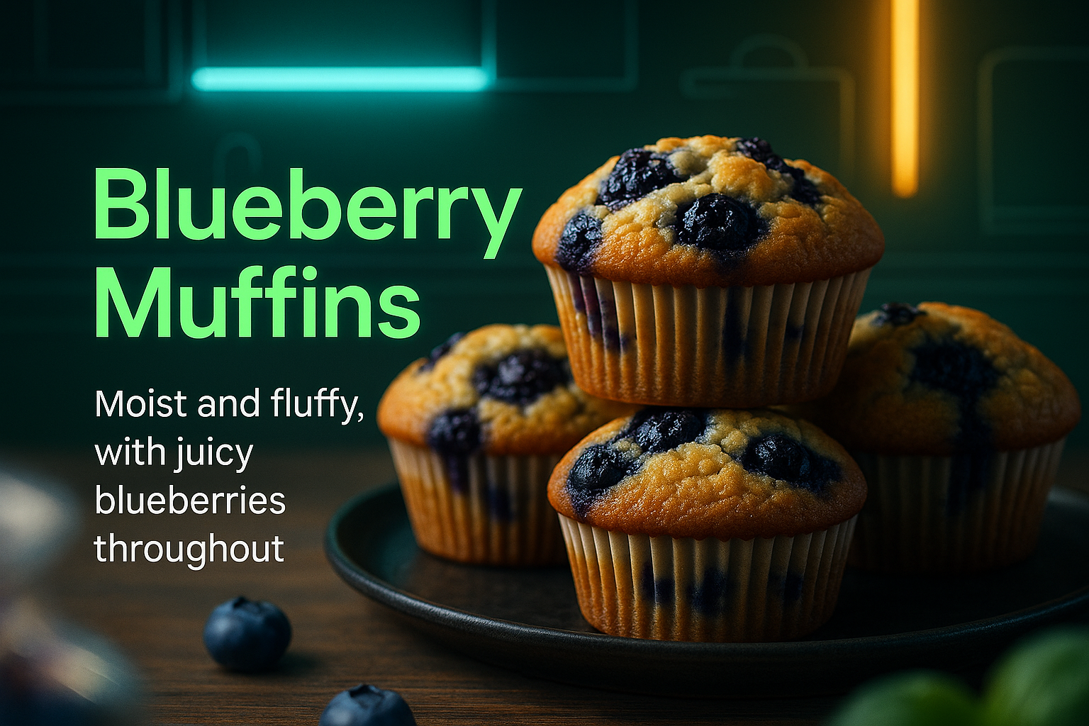 Delicious Blueberry Muffins Presentation with Text Overlay