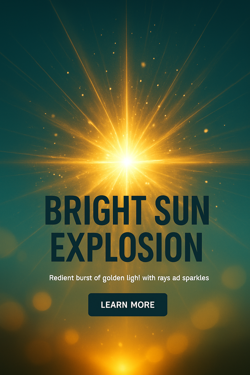 This vibrant graphic features a radiant burst of golden light, designed as a social media post or promotional banner. Ideal for attracting attention.