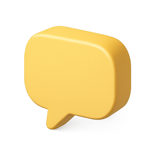 A stylized 3D yellow speech bubble graphic, ideal for communication themes and digital media. Its simplistic design makes it suitable for various applications.