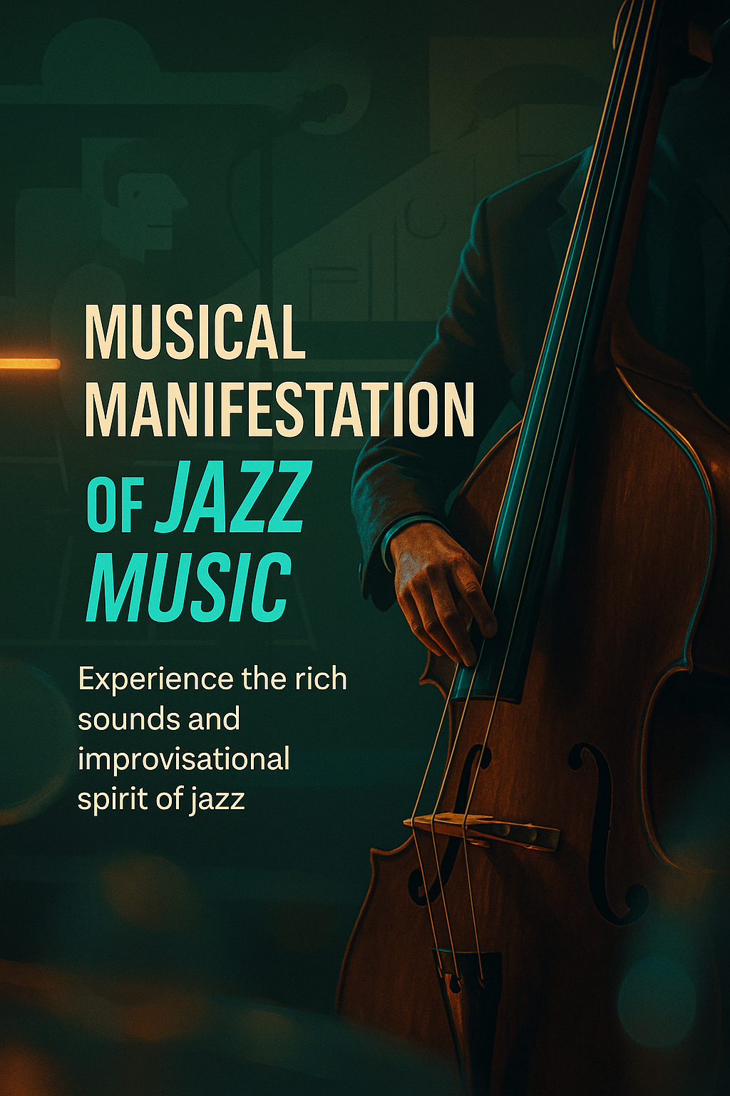 /Collection: /by davooda/Type: PNG/A visually striking image that captures the essence of jazz music, featuring a musician playing a double bass. The design combines rich colors and modern elements, ideal for music promotions or events.