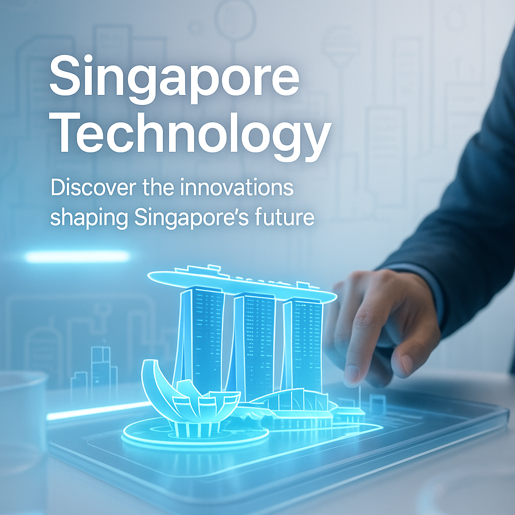 /Collection: /by davooda/Type: PNG/A modern digital representation highlighting Singapore's technological innovations with a sleek design, ideal for tech-related marketing or informational content.