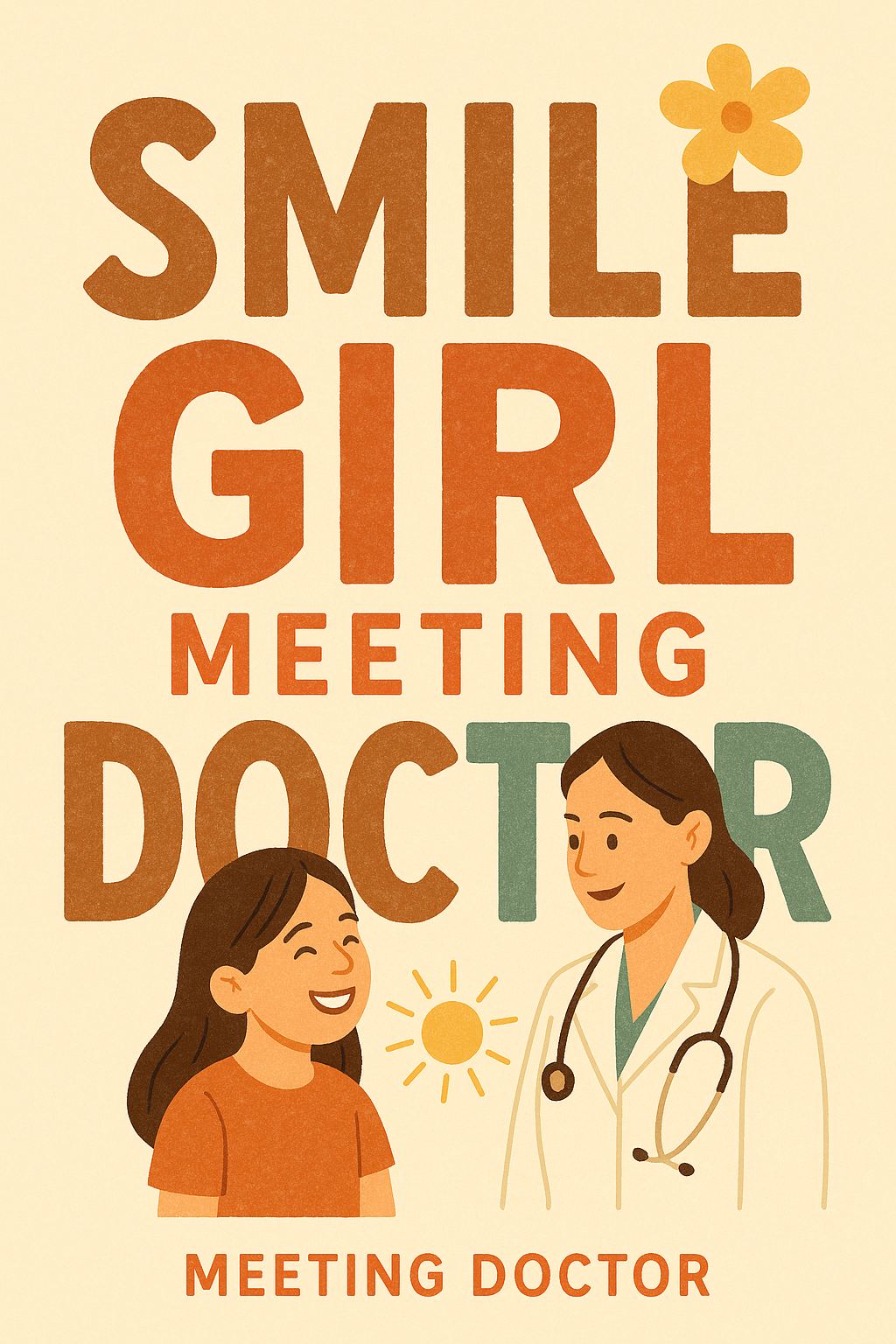/Collection: /by davooda/Type: PNG/Colorful illustration depicting a smiling girl meeting a doctor, designed to promote a positive healthcare experience, suitable for educational materials or healthcare campaigns.