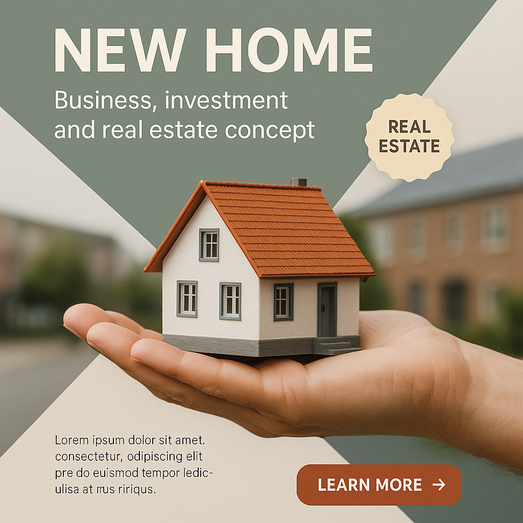 /Collection: /by davooda/Type: PNG/A miniature house is held in a human hand, symbolizing new home ownership and real estate investment. The background features a blurred neighborhood, enhancing the theme of residential areas.