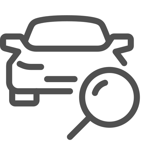 outline simple icon: auto, automobile, car, inspection, magnifying glass