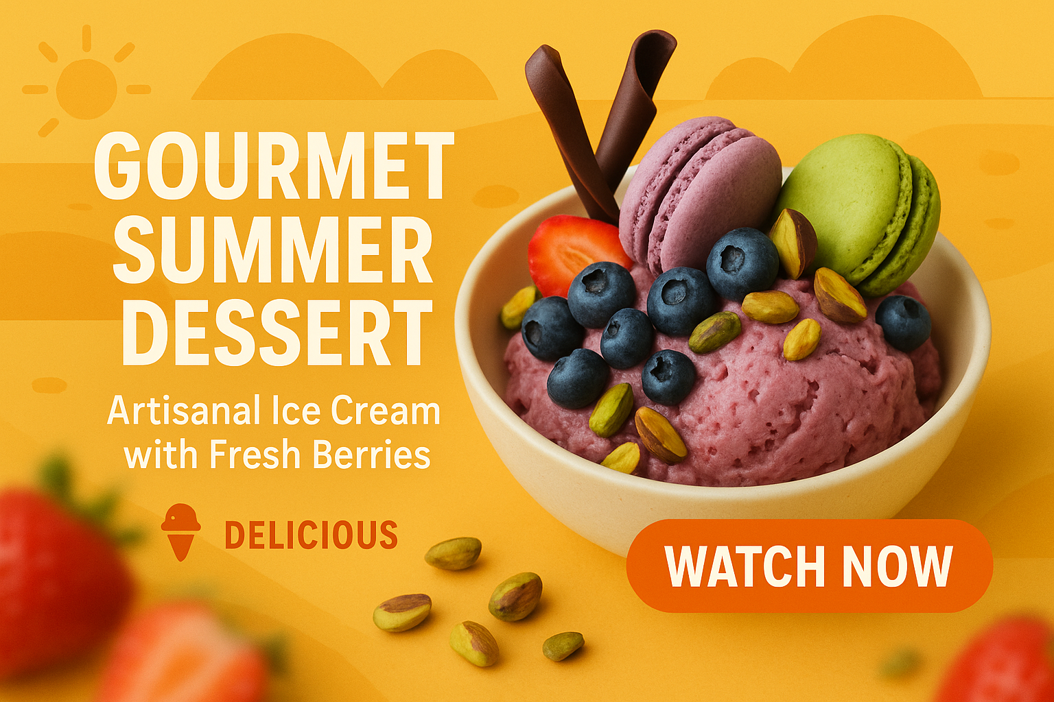 Gourmet Summer Dessert Promotion Featuring Ice Cream and Berries
