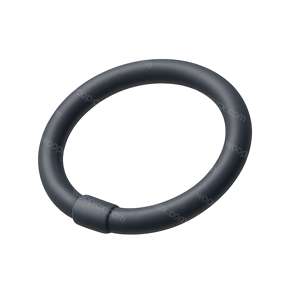 A sleek 3D icon of a hair tie, presented in a three-quarter isometric view. The design features a smooth, dark surface against a subtle gradient background, enhancing its volumetric look.