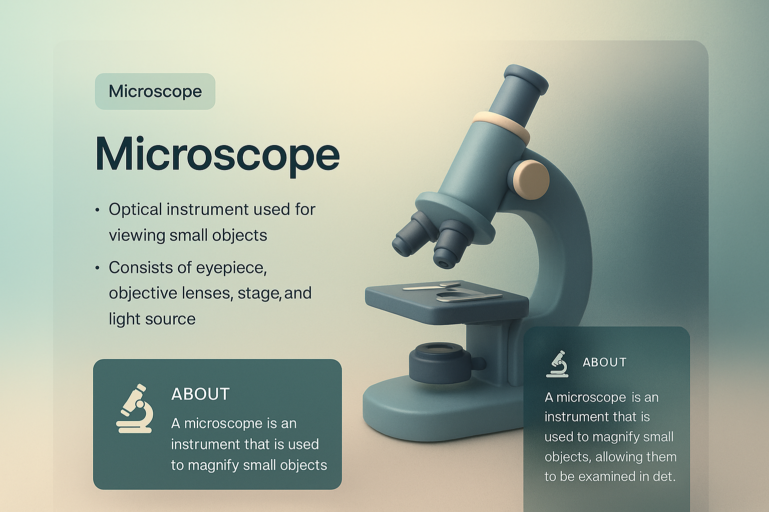 A 3D illustration of a microscope set against a smooth gradient background. Includes informative text blocks and a cohesive design for clarity.