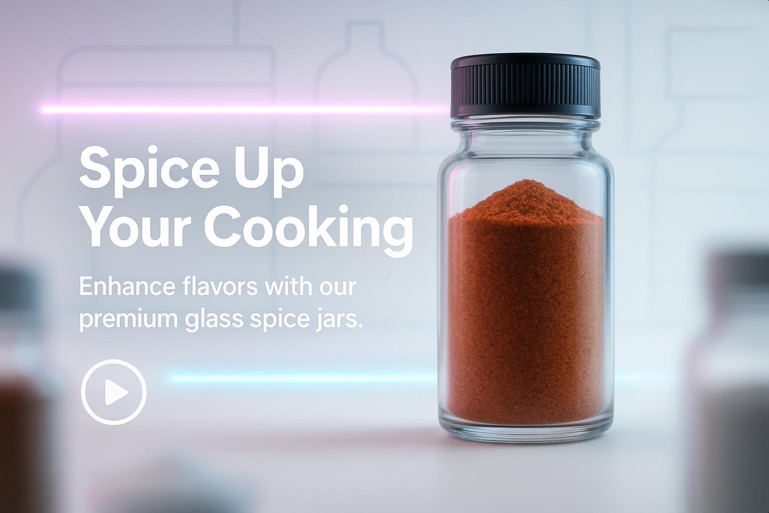 /Collection: /by davooda/Type: PNG/Stylish promotional image showcasing a glass spice jar filled with spices, designed for culinary enthusiasts. Features modern graphics and vibrant colors suitable for marketing.