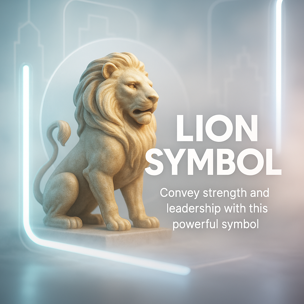 /Collection: /by davooda/Type: PNG/A visually striking digital artwork of a lion sculpture symbolizing strength and leadership, enhanced by modern design elements. Ideal for motivational content and branding.