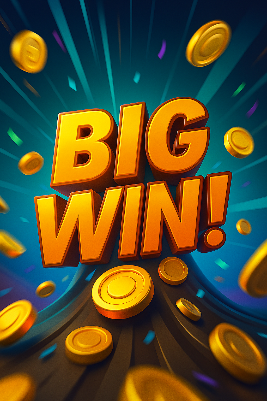 Dynamic Big Win Animation with Coins and Colorful Elements