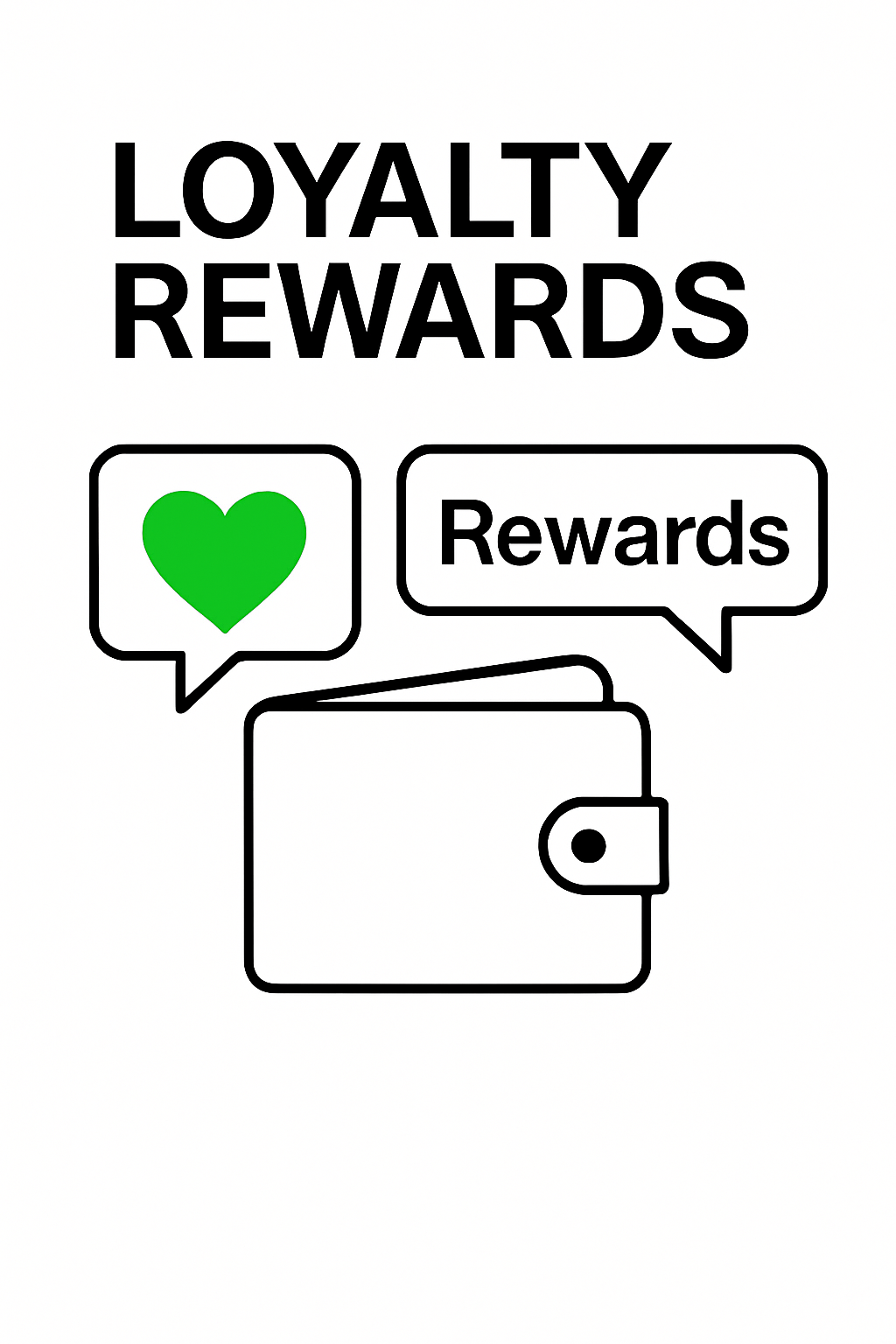 Simple and modern promotional graphic highlighting loyalty rewards with a wallet icon and speech bubbles, ideal for customer engagement campaigns.