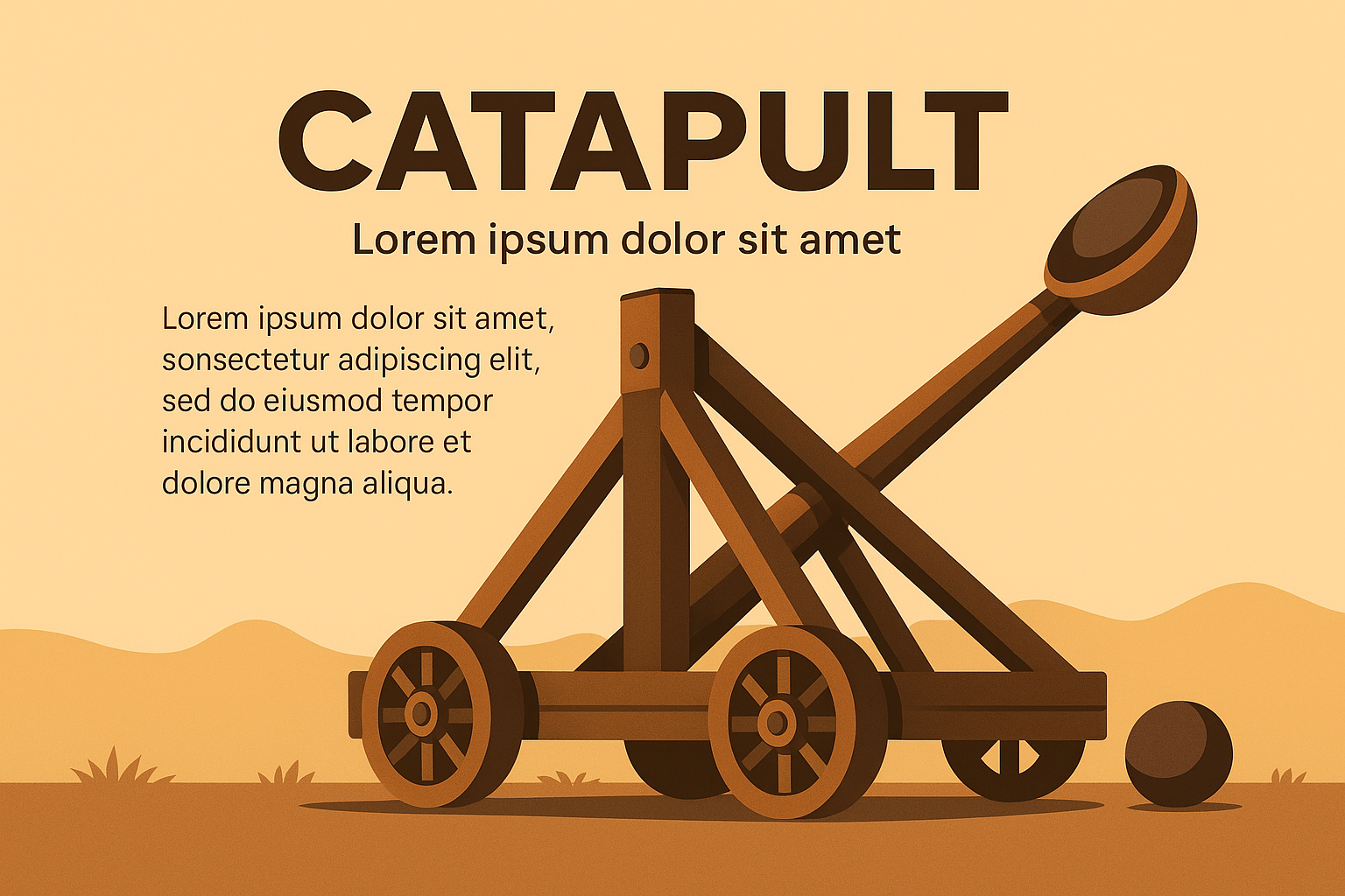 A stylized image of a catapult featuring geometric shapes and a simple gradient background. The design includes a primary title and a subtitle, complemented by a well-structured layout.