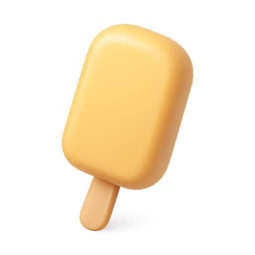 A visually appealing 3D render of a popsicle, showcasing a smooth, glossy texture and a vibrant yellow color, ideal for food-related graphics or summer promotions.