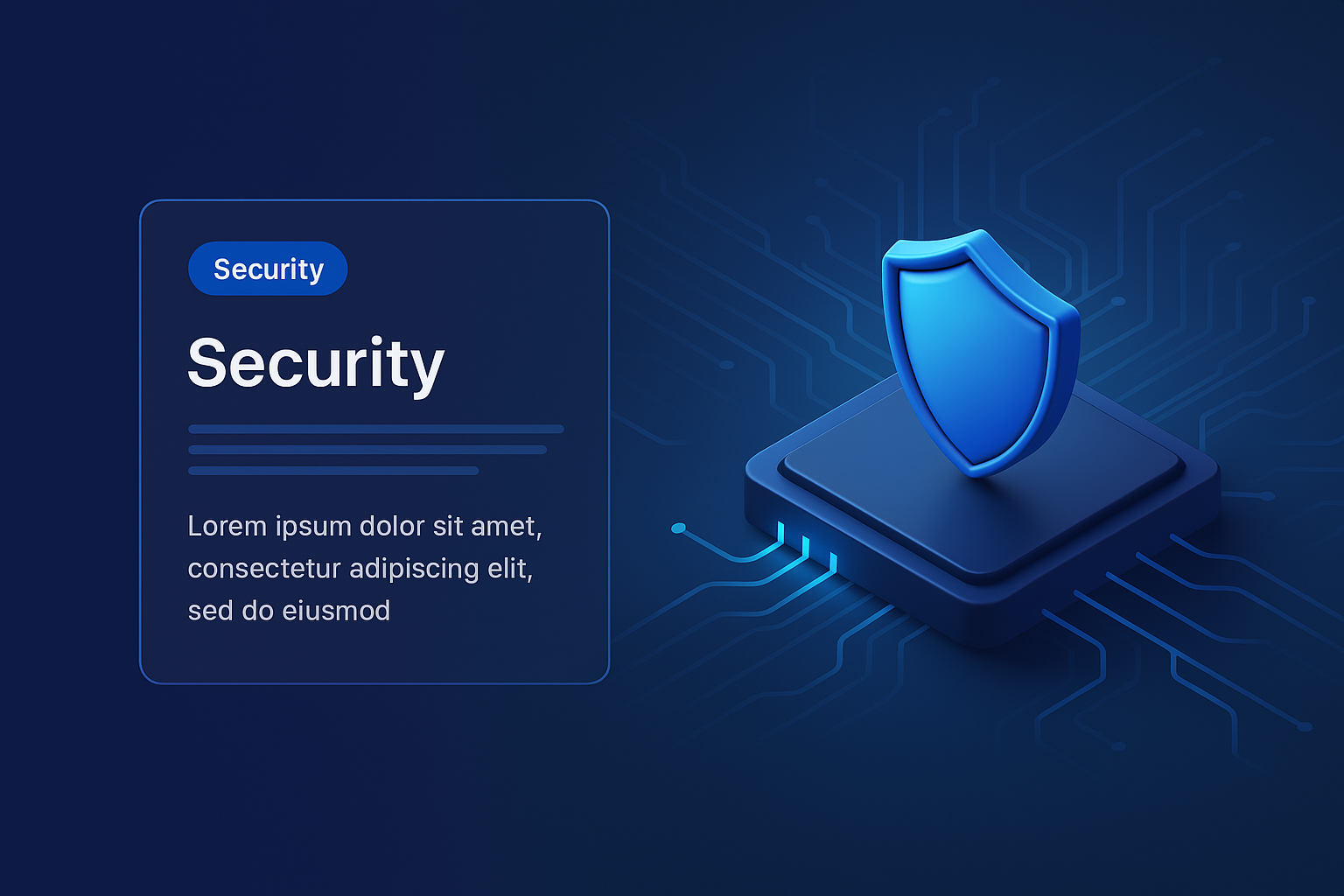 /Collection: /by davooda/Type: PNG/This image features a 3D illustration of a shield symbolizing security, set against a digital circuit board backdrop. The gradient colors enhance the modern aesthetic.