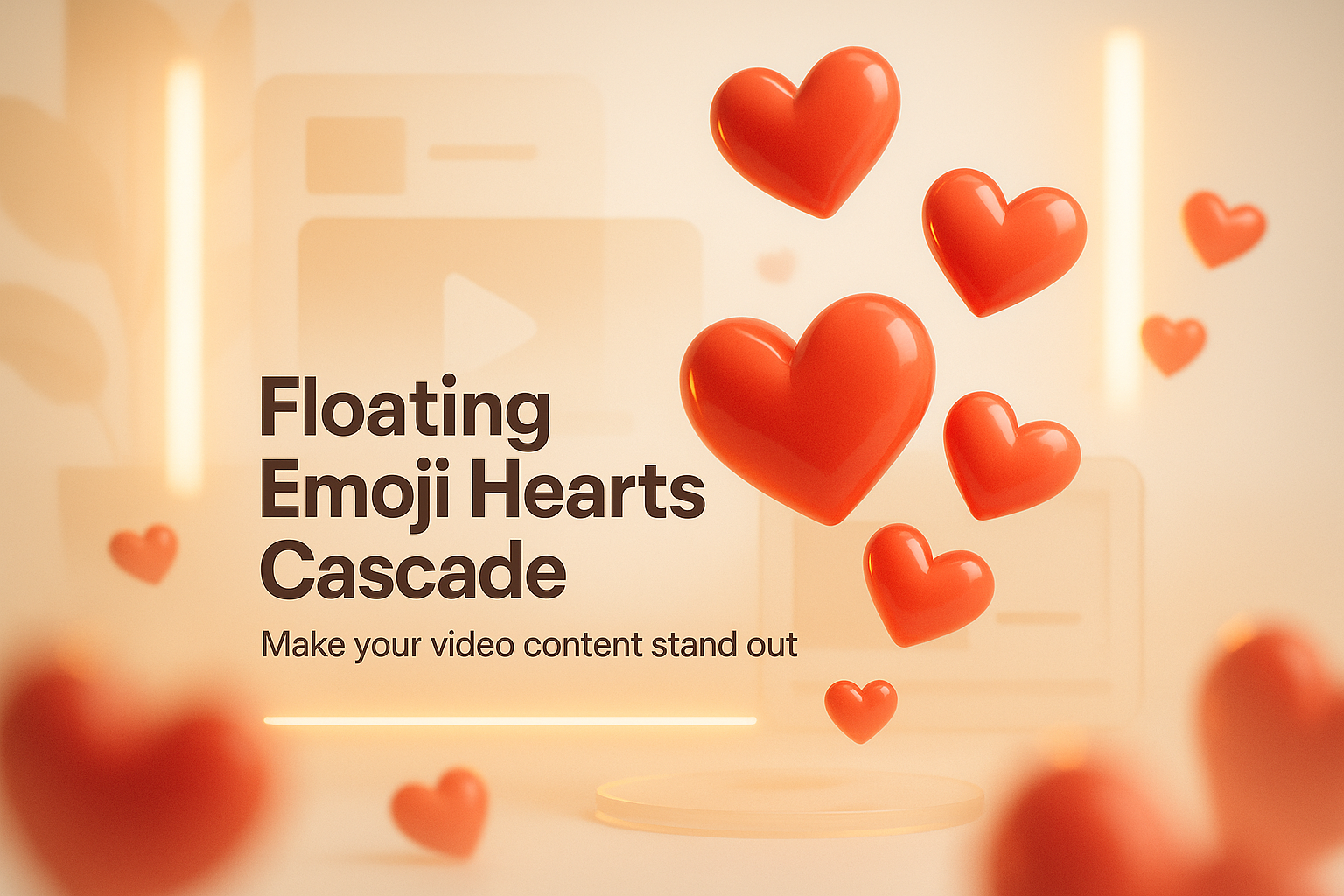 A vibrant 3D graphic featuring a cascade of floating red hearts, designed to enhance video content with a playful and engaging visual style. Perfect for digital marketing and social media.