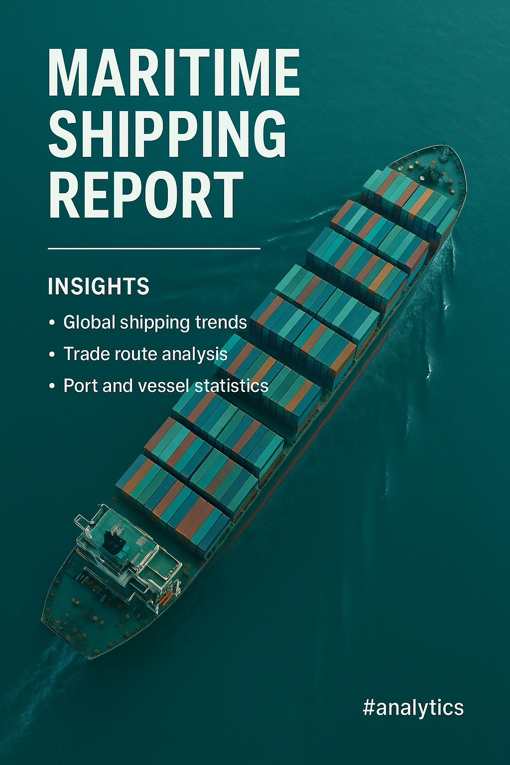 /Collection: /by davooda/Type: PNG/Professional report cover featuring an aerial view of a container ship, ideal for maritime analytics and trade insights. Clean design with a focus on shipping data.