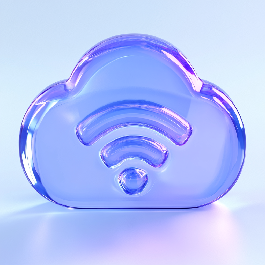 Glossy Cloud Icon with Wi-Fi Symbol in Gradient Style
