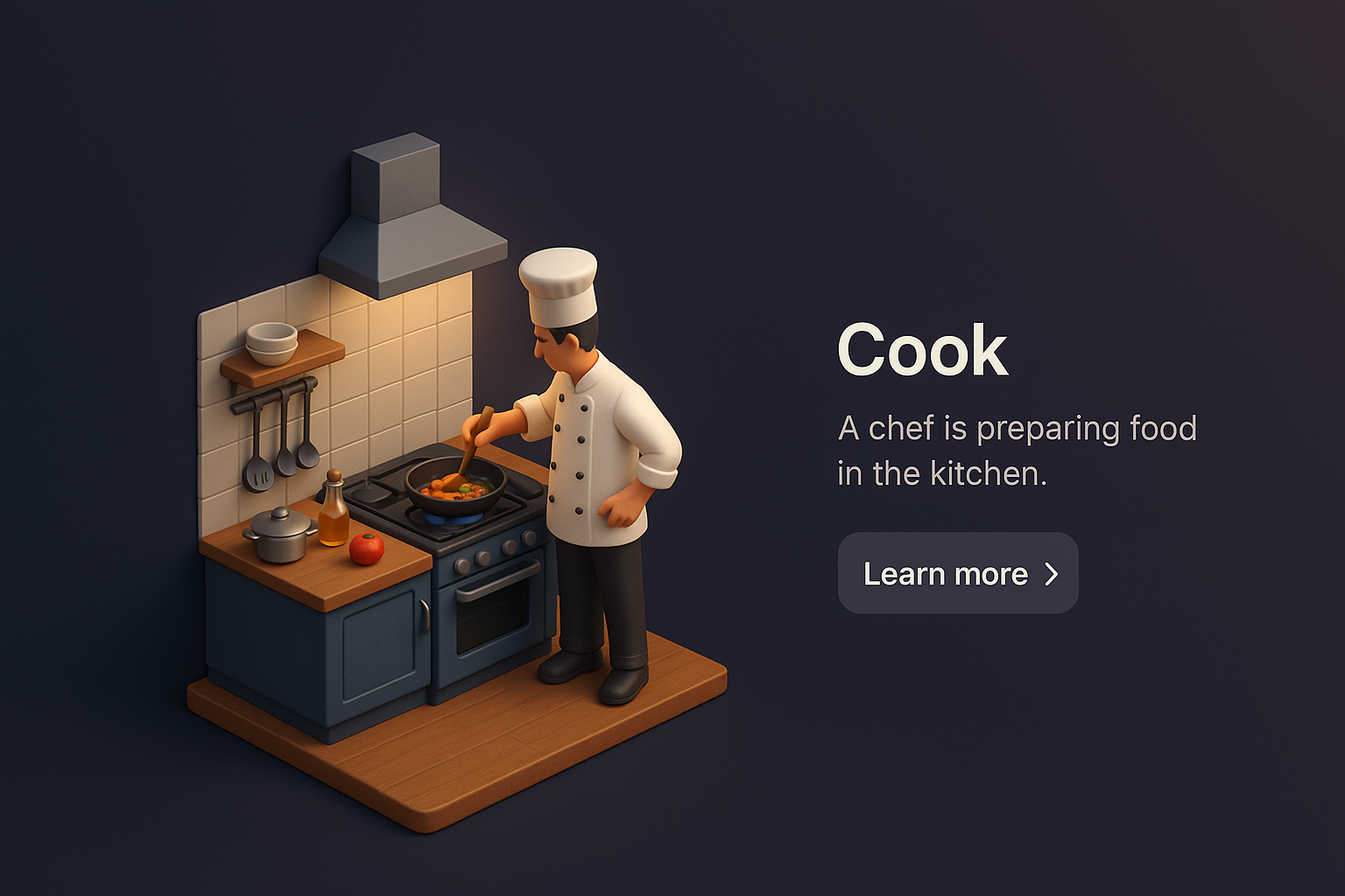 3D Kitchen Scene with Chef Cooking in Realistic Style
